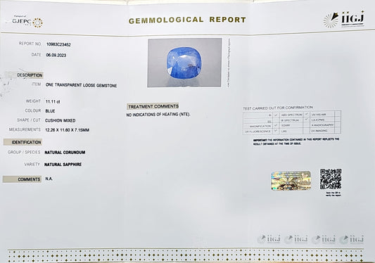 Certified Blue Sapphire-11.11 Carats (12.22 Ratti) Sri Lanka (Ceylon), SKU:HGZI27