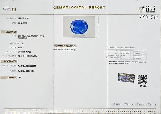 Certified Blue Sapphire-9.19 Carats (10.12Ratti) Sri Lanka (Ceylon), SKU:VKZI34