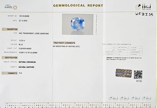 Certified Blue Sapphire-12.23 Carats (13.45Ratti) Sri Lanka (Ceylon), SKU:WFZI39