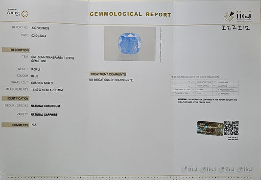 Certified Blue Sapphire-8.99 Carats (9.89 Ratti) Sri Lanka (Ceylon), SKU:IZZI12