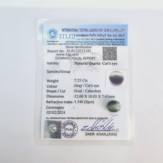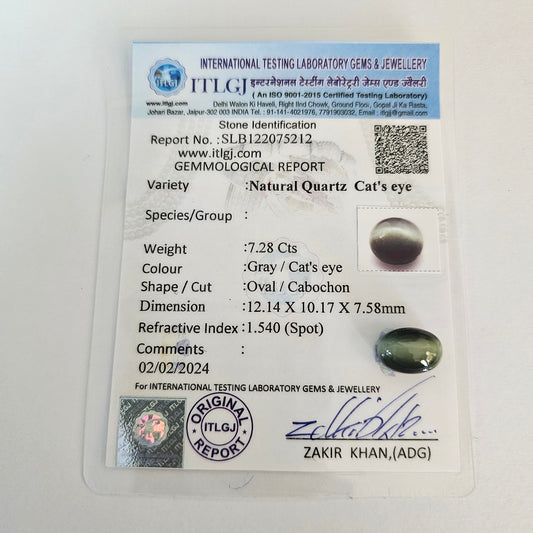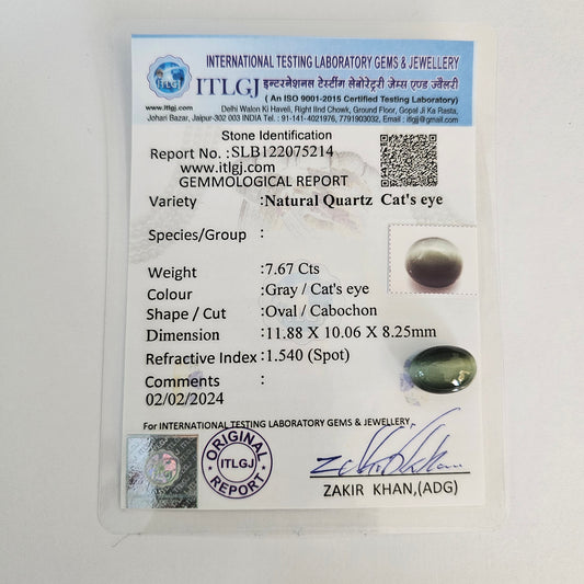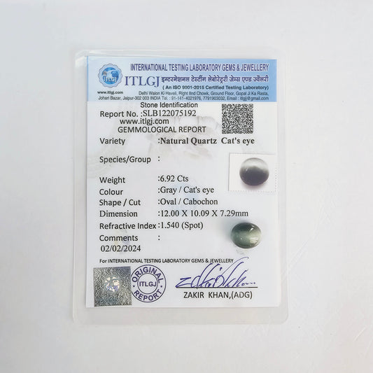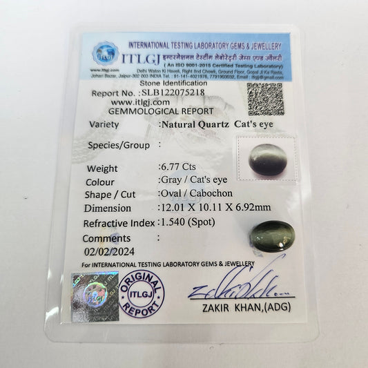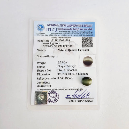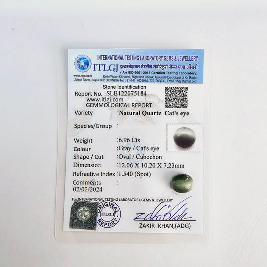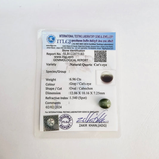 Certified Cat's Eye Quartz (Lahsunia) 6.96 Cts. (7.65 Ratti) ITVD61
