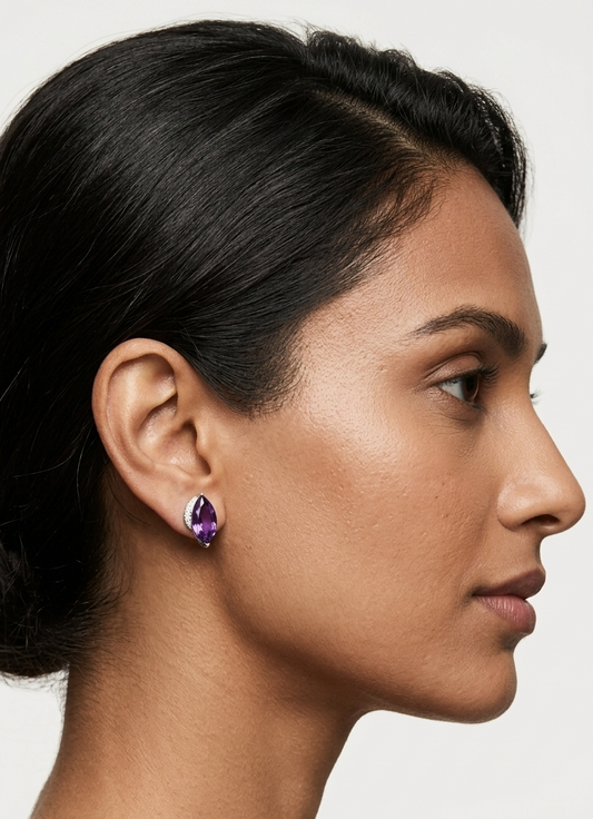Amethyst & Diamond Stud Earrings in 18k white gold in Marquise Shape – Bespoke Creation