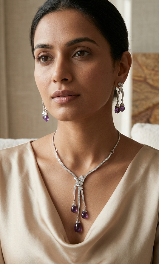 Orion Amethyst Drop Set in 18K White Gold