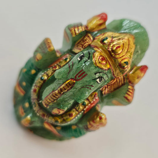 Green Aventurine Ganesha Painted Natural Gemstone Idol