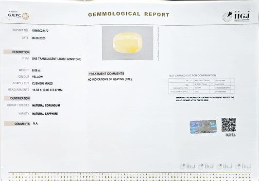 Certified Yellow Sapphire-8.08 Carats (8.88 Ratti) Burma, SKU: BJZI17