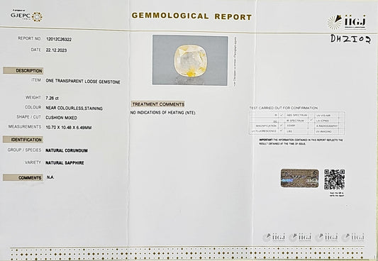 Certified Yellow Sapphire-7.26 Carats (7.98 Ratti) Sri Lanka (Ceylon), SKU:DHZI02
