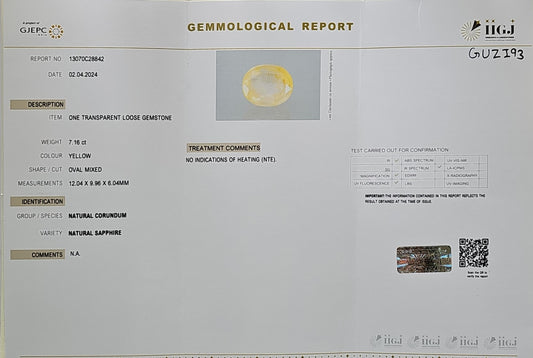 Certified Yellow Sapphire-7.16 Carats (7.87 Ratti) Sri Lanka (Ceylon), SKU: GUZI93