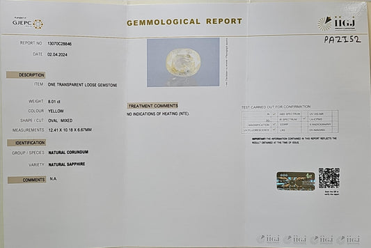 Certified Yellow Sapphire-8.01 Carats (8.81 Ratti) Sri Lanka (Ceylon), SKU: PAZI52