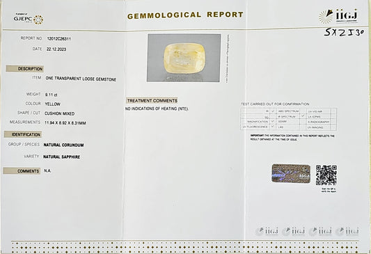 Certified Yellow Sapphire-9.11 Carats (10.02 Ratti) Sri Lanka (Ceylon), SKU: SXZI30