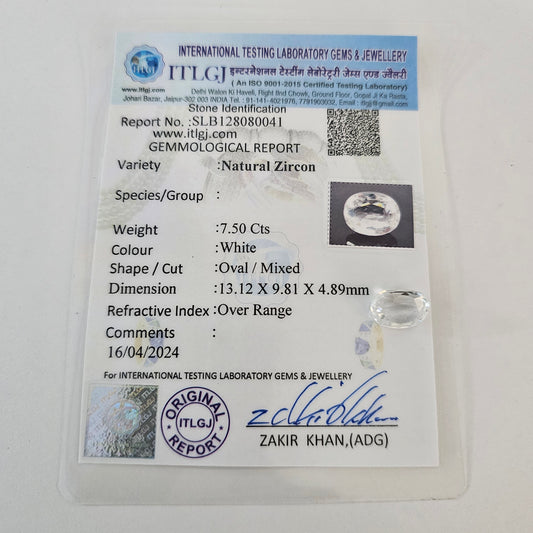 Certified White Zircon 7.50 Cts (8.25 Ratti) HVVW09