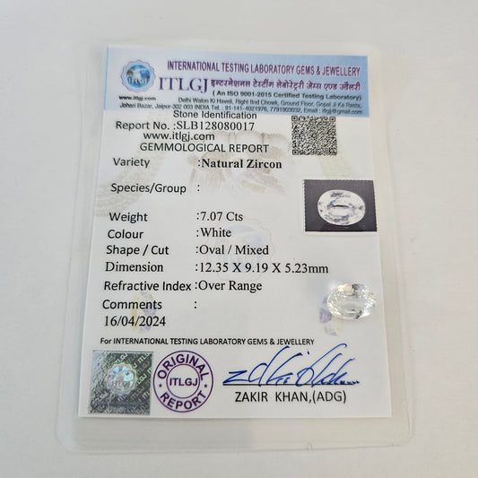 Certified White Zircon 7.07 Cts (7.78 Ratti) IMVW89