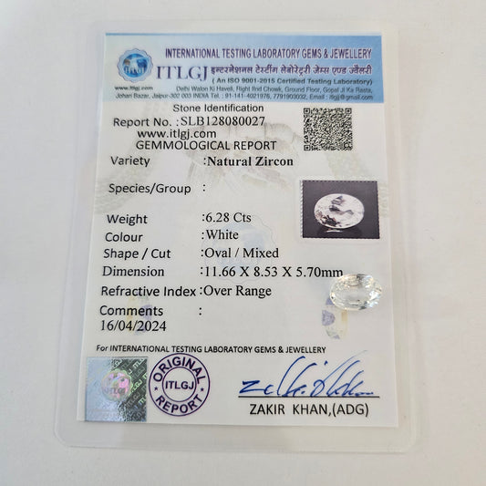 Certified White Zircon 6.28 Cts (6.90 Ratti) ITVW10