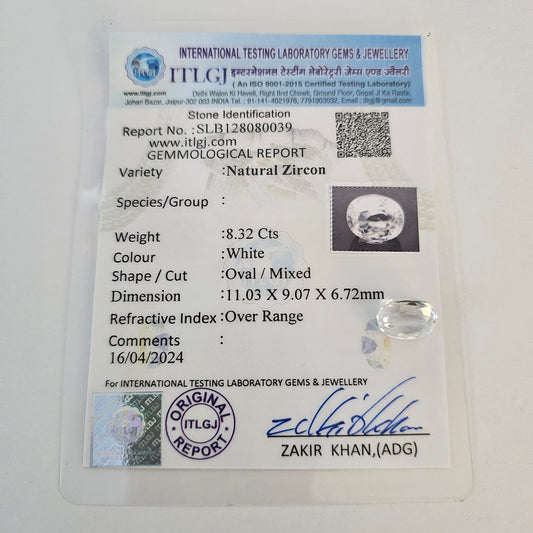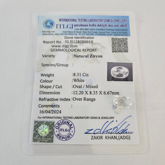 Certified White Zircon 8.29 Cts (9.11 Ratti) TMVW28