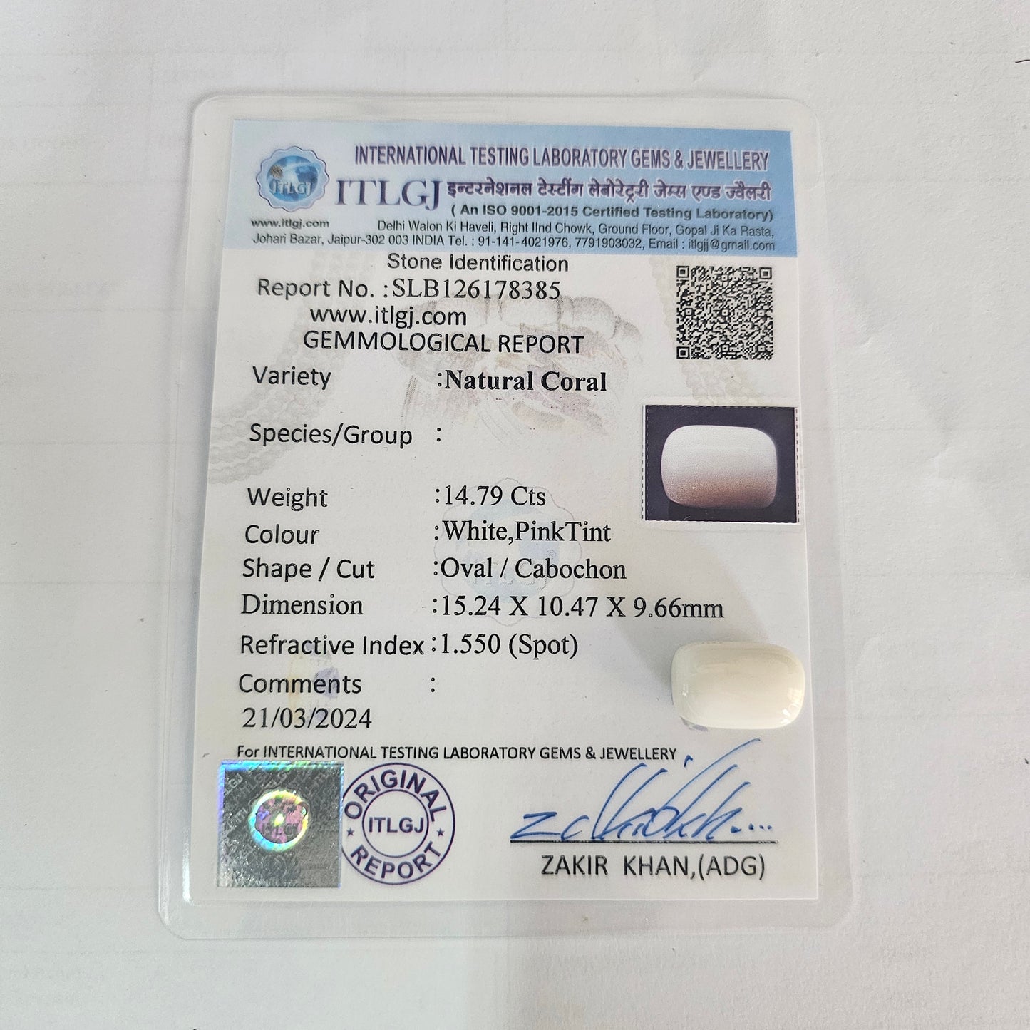 Certified Coral (Safed Moonga) 14.79 Cts. (16.27 Ratti) Japan EVZI46