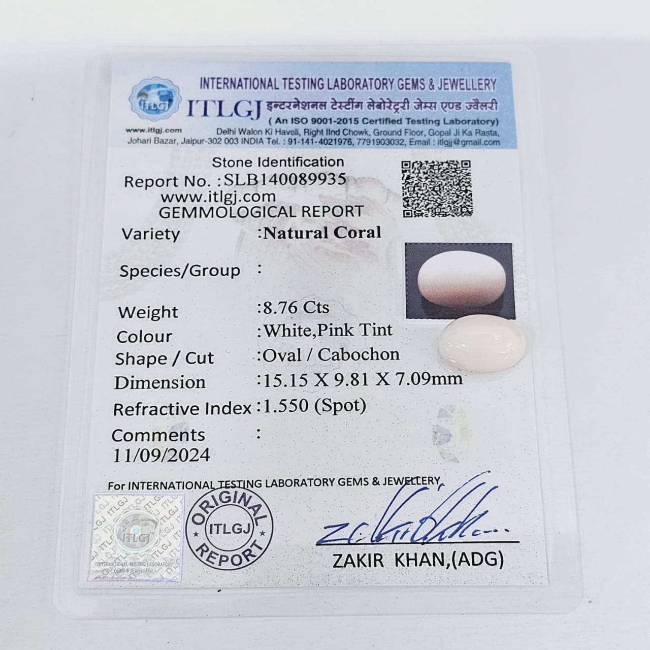 Certified Coral (Safed Moonga) 8.76 Cts. (9.63 Ratti) Japan VAZI23