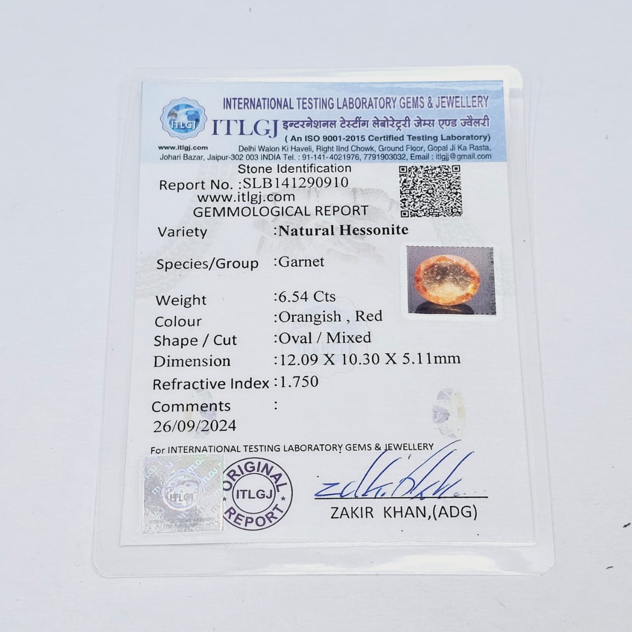 Certified Hessonite (Gomed) 6.54 Cts (7.19 Ratti) Sri Lanka (Ceylon) TCZI38