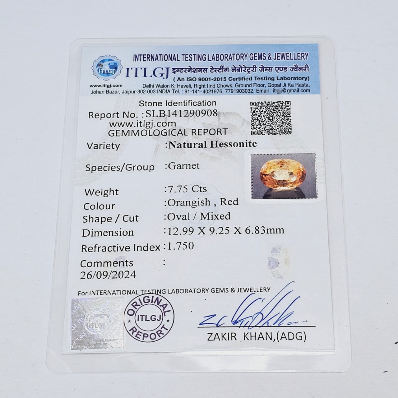 Certified Hessonite (Gomed) 7.75 Cts (8.52 Ratti) Sri Lanka (Ceylon) VDZI63