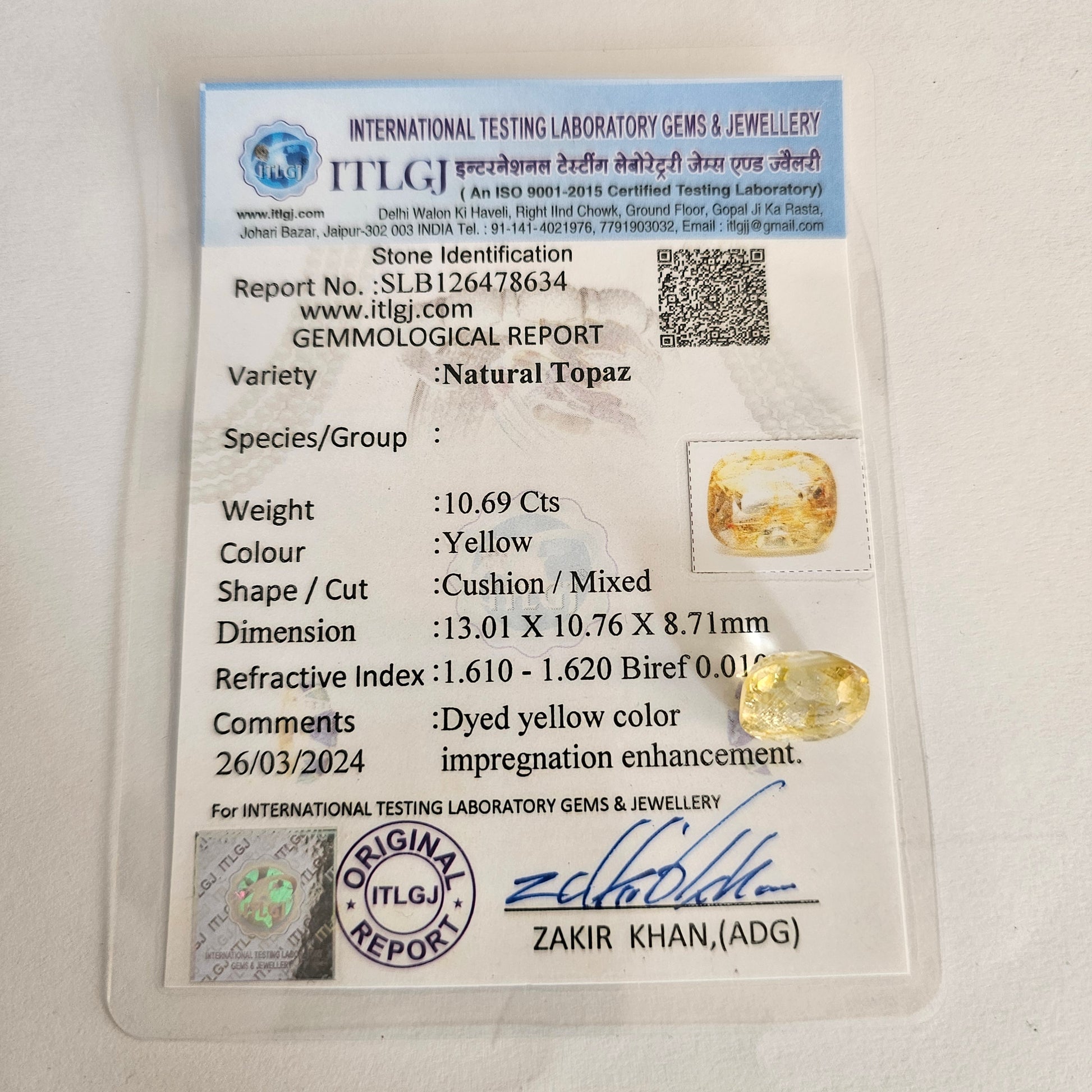 Certified Yellow Topaz 10.69 Cts (11.75 Ratti) SXZI84