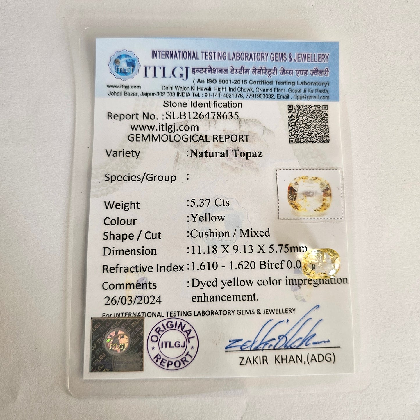 Certified Yellow Topaz 5.37 Cts (5.90 Ratti) GXZI78