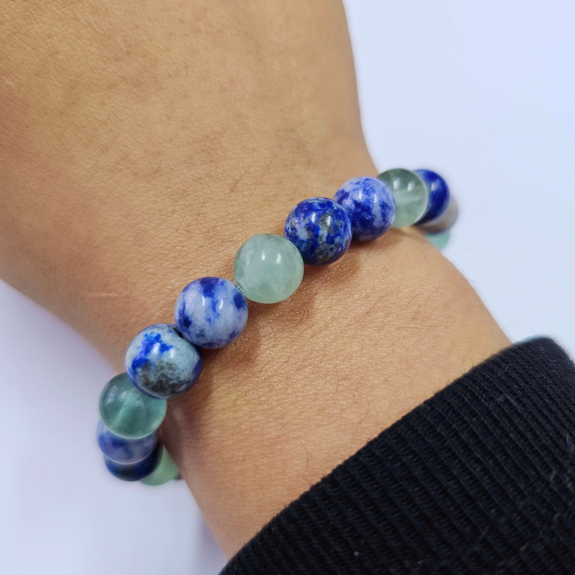 📌 Round beads size - 7-8mm Bracelet length: 7.25 Inches 📌 Made with natural Lapis Lazuli, Green Fluorite, Sodalite beads